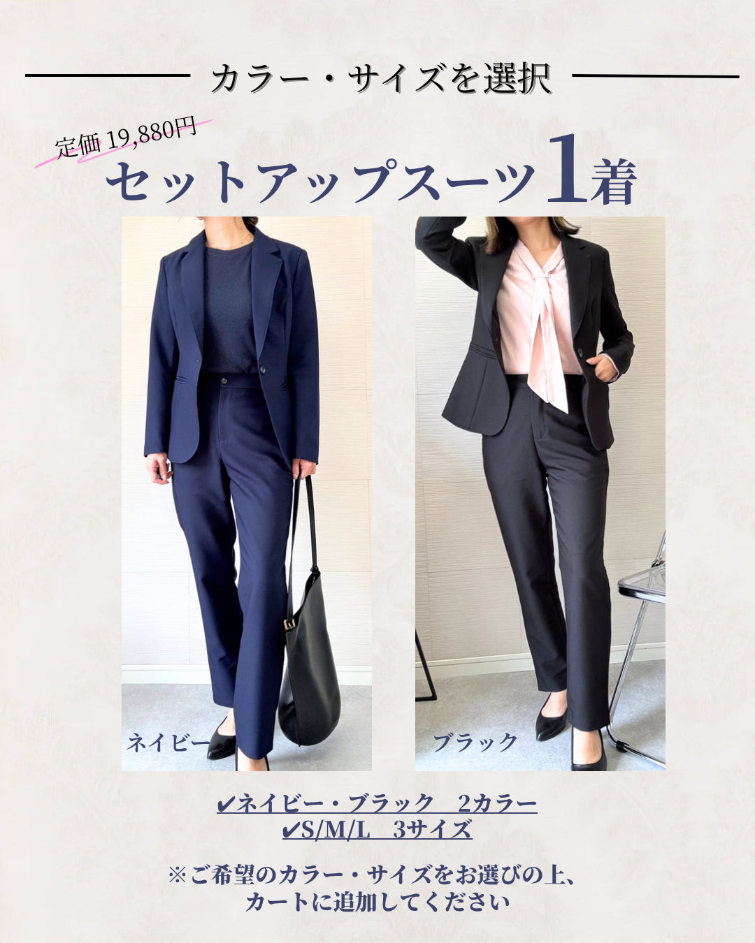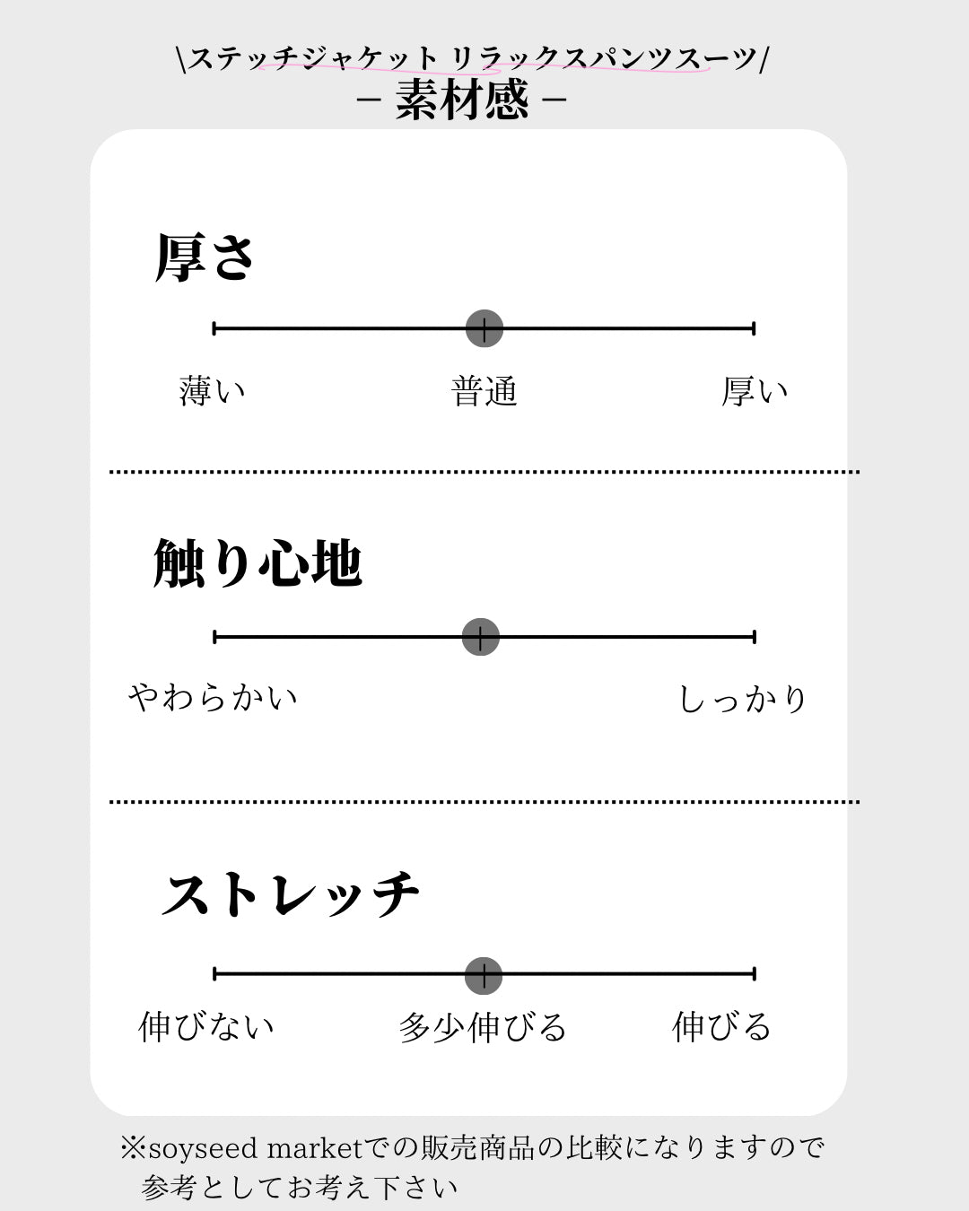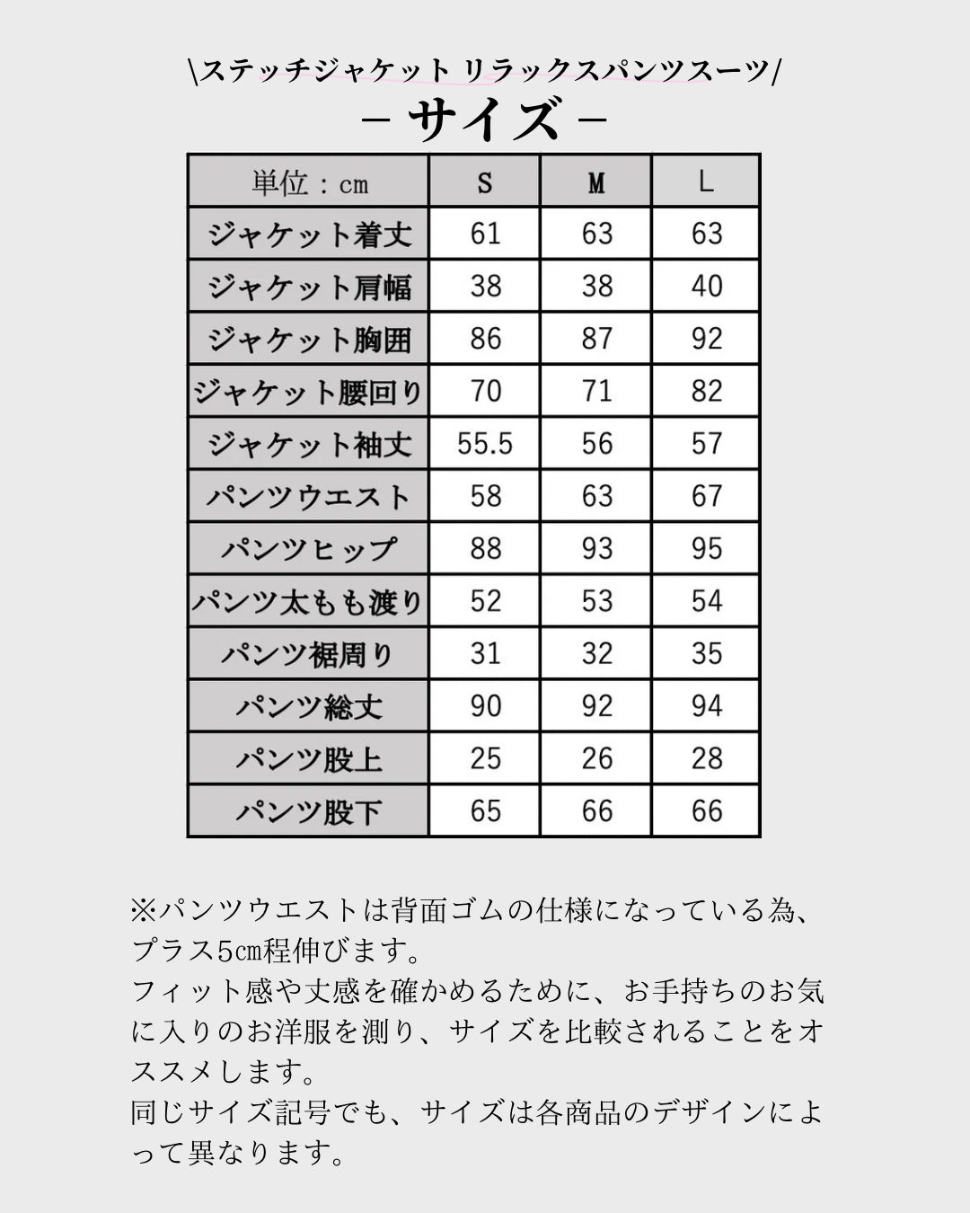 必ず入る「ステッチジャケット リラックスパンツスーツ」の