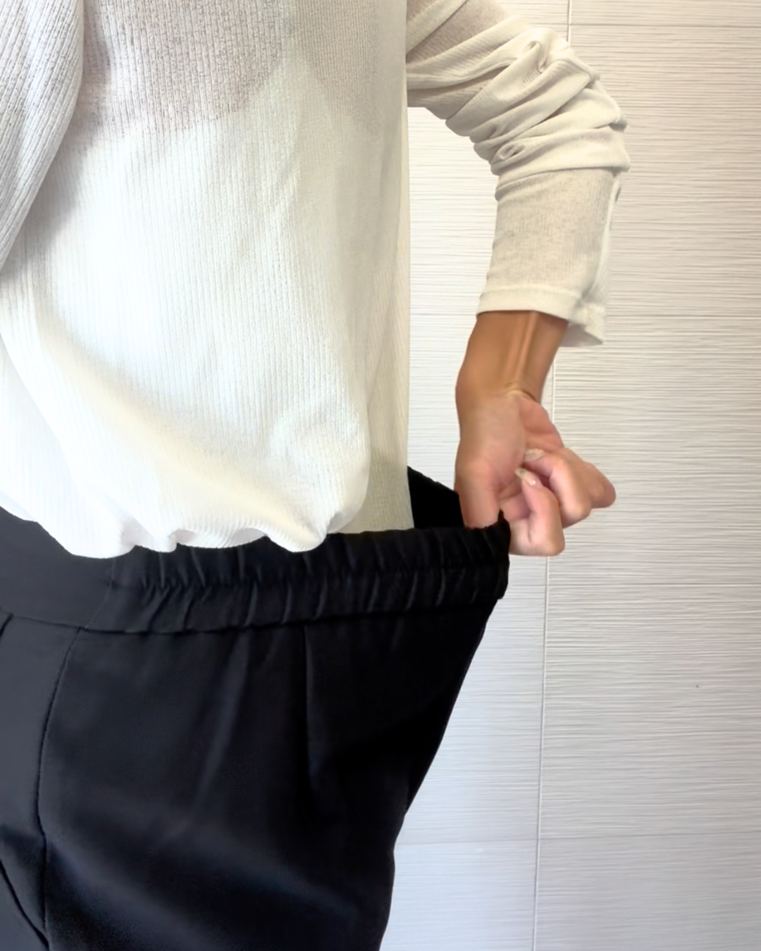 パンツの後ろゴム仕様で長時間の会議もこっそりラク。